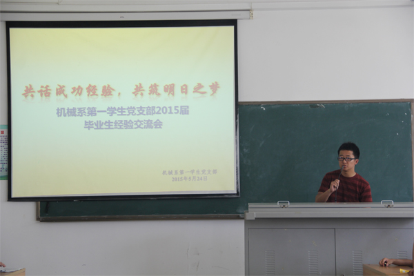 5月24日下午15时,Beat365官方网站机械系第一学生党支部在4教110举行主题为“共话成长经验,共筑明日之梦”的毕业生交流会。支部全体成员参加本次会议,会议由支部副书记张小峥主持。