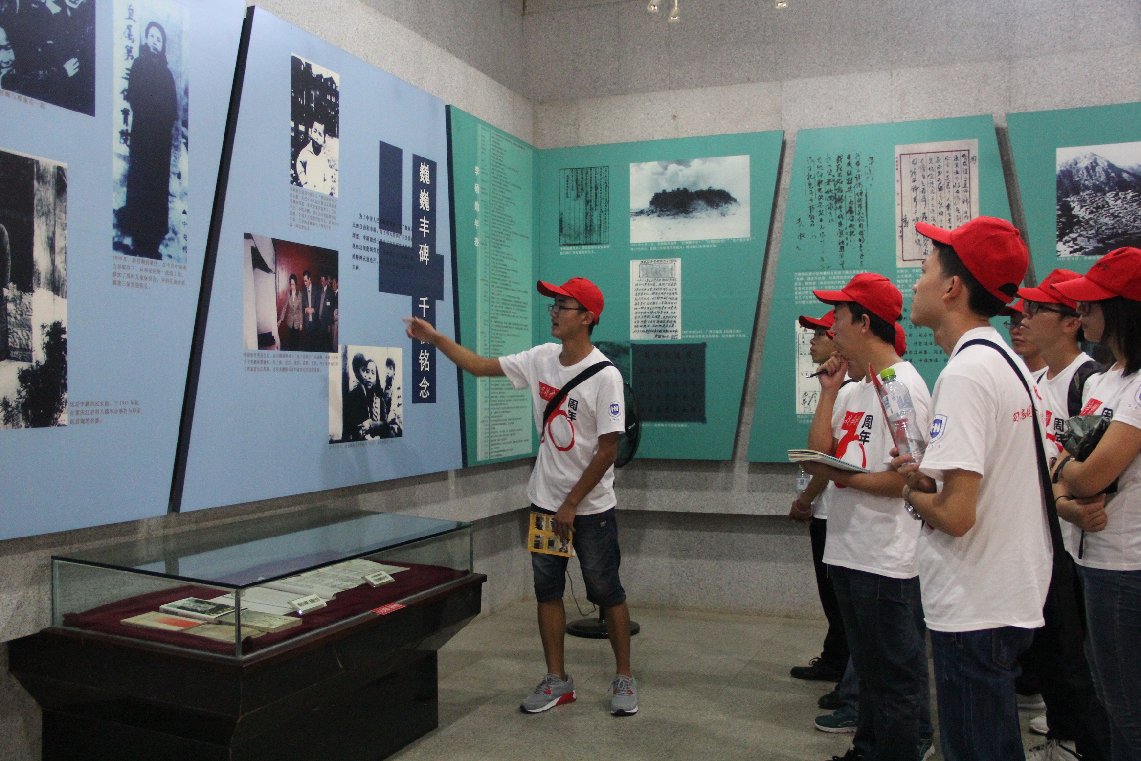 刚到“李硕勋烈士纪念亭”,映入寻访团眼帘的是李硕勋烈士雕像及纪念亭。随后寻访团参观了镌刻有朱德,江泽民等领导同志题词的题词壁,并且跟随着当地管理处解说员的脚步参观李硕勋烈士生平业绩展览。展览室里,讲解员以时间脉络为一行人声情并茂的讲述了当年的事迹。一个世纪的峥嵘岁月,是中国共产党领导全国人民不屈不挠,前赴后继,英勇战斗的光辉历程,李硕勋烈士用其短暂的28个春秋,为伟大的共产主义事业写下了可歌可泣的不朽诗篇。他是我国早期学生运动的杰出领袖,人民军队的卓越指挥官,英勇的共产主义战士,忠诚的无产阶级革命家,他为我国新民主主义革命立下了不可磨灭的功勋。寻访团在临走前,为“李硕勋烈士纪念亭”周围除草打扫,致以最真诚的敬意。