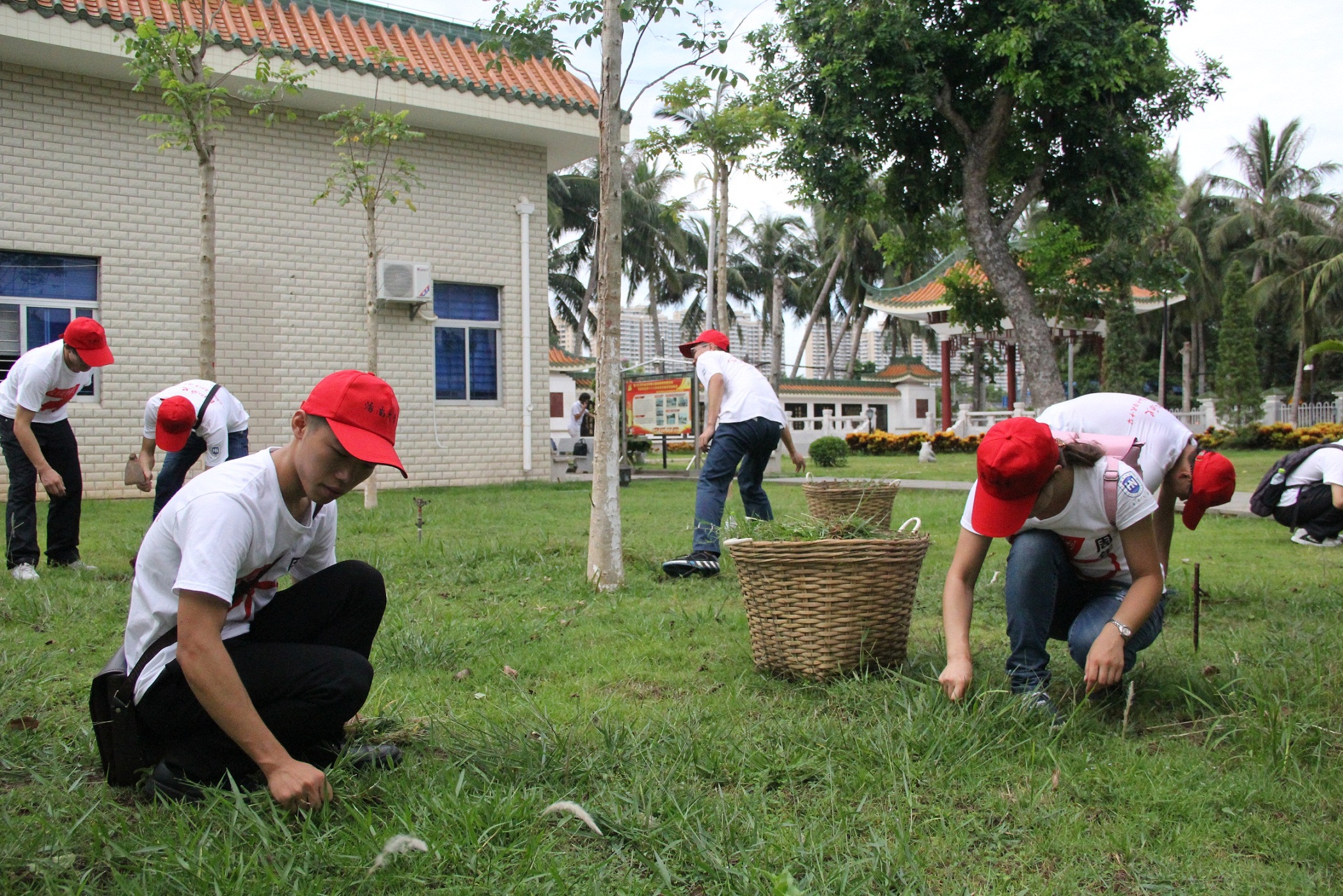 寻访团为纪念园锄杂草