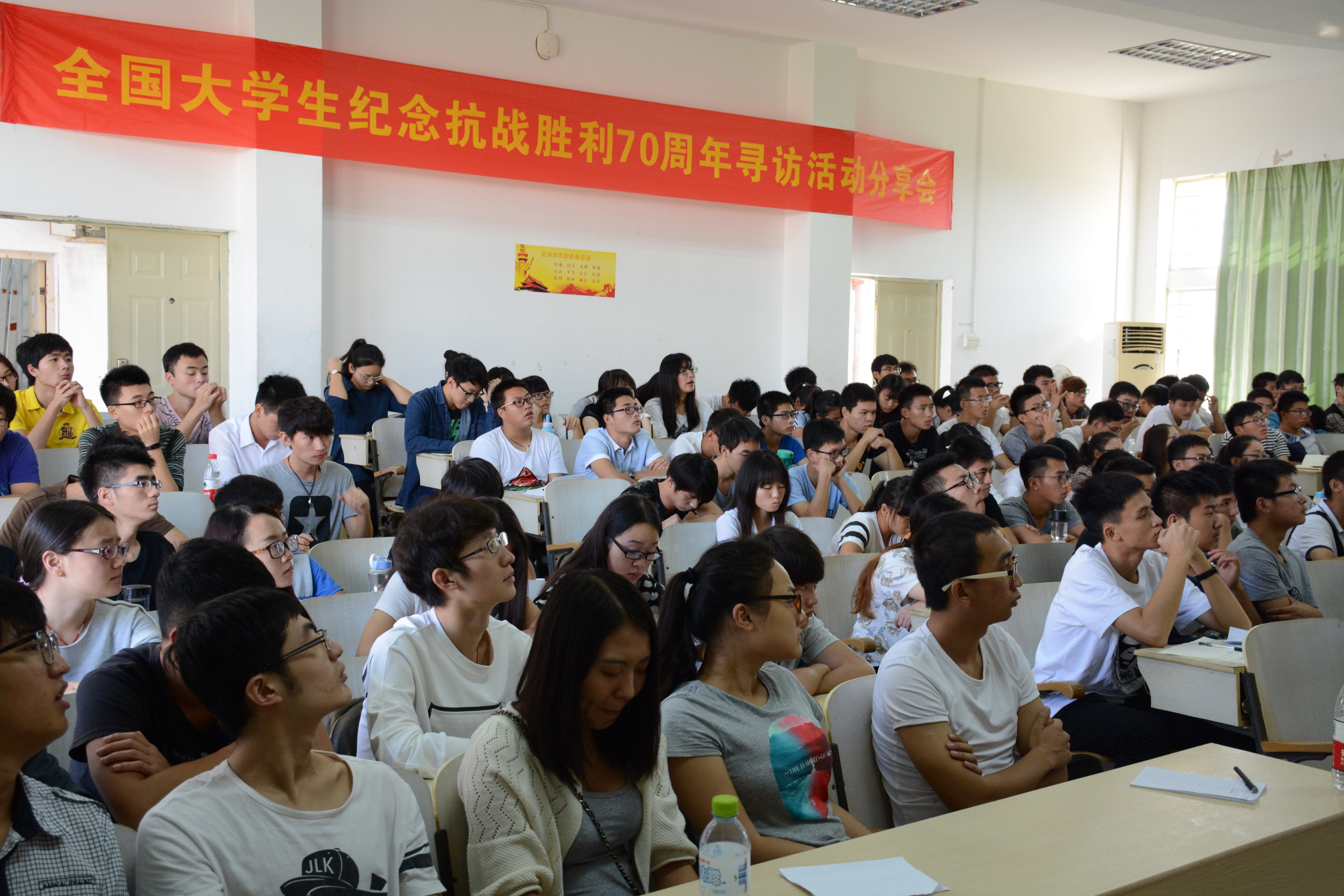 活动开始后,致远传承寻访团指导老师崔建兵讲述了全国大学生纪念抗日战争胜利70周年寻访活动的内容与意义,希望通过致远传承团队的分享,引导更多青年大学生主动、自觉地在社会实践中学习“历史课”,缅怀抗战先烈,传承革命精神。随后,团队成员一一上台与大家分享自己的寻访心得以及感悟,他们用朴实真切的言语赢得了在场同学的一次次掌声,他们的体会引起了在场同学的共鸣。接着在互动环节中,在场同学踊跃发言,积极与团队成员交流,希望以后有机会也能参加这样有意义的社会实践活动。宣讲结束后,团队成员邀请在场观众观看《抗战老兵寄语》及由海南新闻频道跟踪拍摄的视频《不能忘却的记忆》为大家展现了寻访过程中的点点滴滴,给在场观众留下了深刻的印象,也使在场同学深刻体会了抗战的艰辛与不易,懂得珍惜眼前的幸福生活。