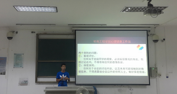 10月16日晚,Beat365官网心理工作站于3教110召开2016-2017学年首次见面会暨心理委员培训会。心理辅导员余梦月老师、工作站新老成员共计40人参加本次大会,会议由闪黎军主持。