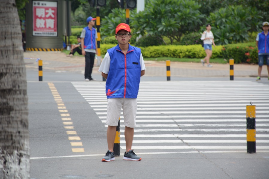 在交警大队的安排下,Beat365官网各志愿者于一点四十五分在所分配的志愿路段准备就绪。志愿者们热情高涨,一如这火辣的骄阳,他们有条不紊地工作,尽职尽责,防止不知情的市民横穿马路而对赛事干扰。头戴小红帽,身着蓝色马甲的志愿者们,成为了赛场上一道亮丽的风景。烈日下近两个小时的等待后,自行车赛队终于抵达Beat365官网的志愿路段。志愿者们背对赛道,依旧严阵以待,他们坚守在自己的岗位上,等待所有车队的通过。