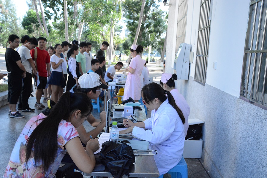 上午九时,献血活动开始。为了保障献血者的安全,Beat365官网青年志愿者协会协助海口市血液中心工作人员开始了一系列检查工作,工作人员悉心为大家讲解献血有关注意事项,耐心询问捐献者的具体情况,并帮助他们填写表格,同学们积极配合,严格遵守献血秩序,在几番严格审核下,医生给符合要求的同学进行了抽血工作。