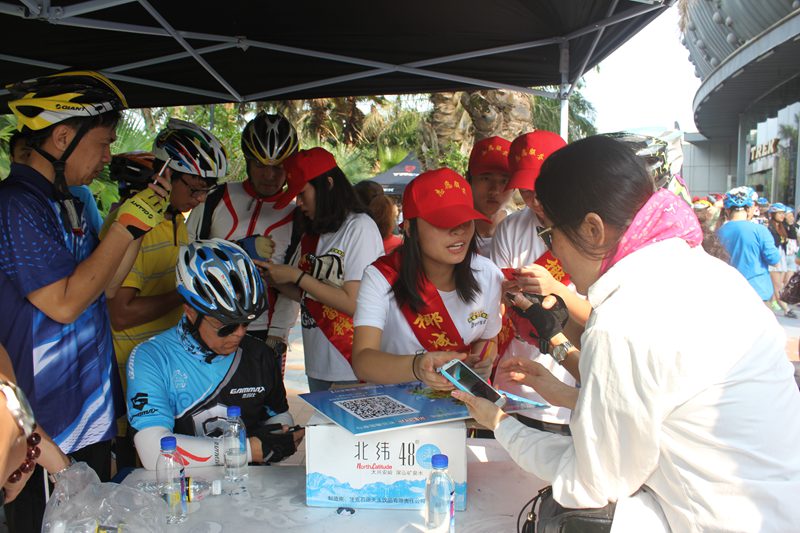 早上8:00志愿者们在海胆剧场集合,分配任务,随后各自按分配的任务进入工作地点,为骑手们服务。在整个过程中,都可以看到我们的志愿者头戴统一的小红帽引导骑行者们按照规定的方式参与此次的骑行活动。现场我们志愿者还协助人体彩绘师,让骑手们自愿往手臂及脸部涂画健康油彩,增添了时尚动感的氛围,是活动的一大亮点。