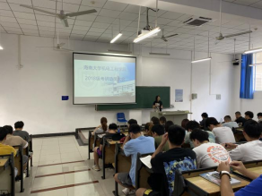 首先,罗洪峰老师为大家分析了当代大学生的就业形势及考研前景。罗洪峰老师说到考研可以提高自己的专业知识和科研能力,不仅有利于将来的就业,同时还可以缓解社会就业压力。接着,李创老师结合个人成长、读研读博经历,从制定目标、备战考研、院校选择三个方面为学生深入剖析考研过程。李创老师说,考研是一次机遇,考研可以开拓我们的眼界。另外,他还详细地说明了初试和复试的相关情况并提供了宝贵的建议。