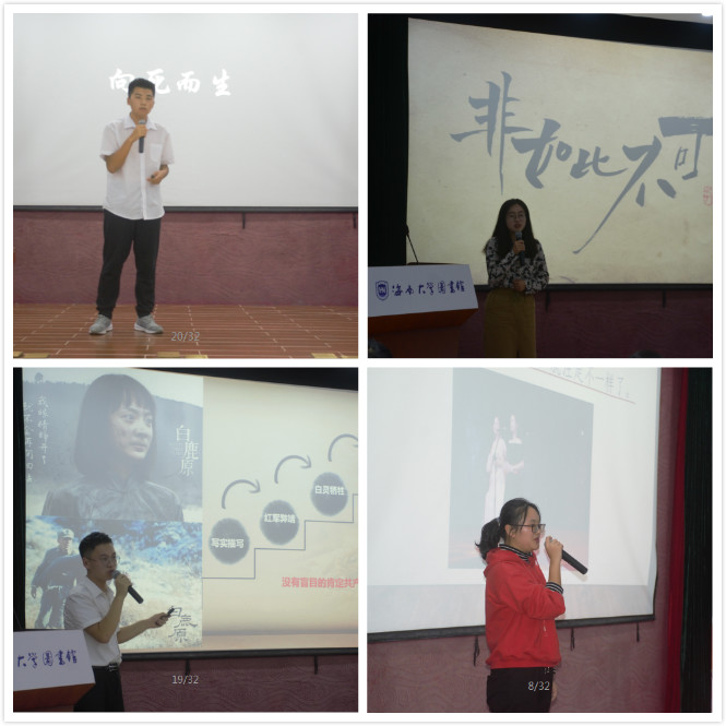 一片热烈的掌声之中,比赛正式开始。参赛选手依次分享了书籍内容、自身感悟以及自身经历。其中,陈琪羽向我们分享了由德国物理学家斯特凡·克莱因集13位科学家访谈编撰而成的《我们都是散落的星骸》。这本书通过讲述13个人,13个世界,13个领域,进而展示了科学家对真理的坚持和对知识的热爱。她告诉我们,借助这本书,科学会走下神坛,跨过山河,拥抱平凡的我们。材料与化工学院的胡渝同学基于《无声告白》一书也进行了自己的分享。这本包涵人生、目标、性别、种族等多主题的书主要讲述父母的过分期待将一个少女“杀死”的故事,反映了我们社会的现状,让人感触良多。海洋学院张瑜同学从龙应台的《目送》谈到了关于亲情,关于人生的悲欢离合、挚爱至亲的故事,其充沛的感情于讲述中挥洒而出,沁染进每位同学心中。热带农林学院的王子豪同学接棒上场,讲述白鹿原上发生的具有陕北特色的家族故事与时代变迁,并别具一格的从书中的社会情形着手,抒发了动荡时期下中国人民的无奈。
