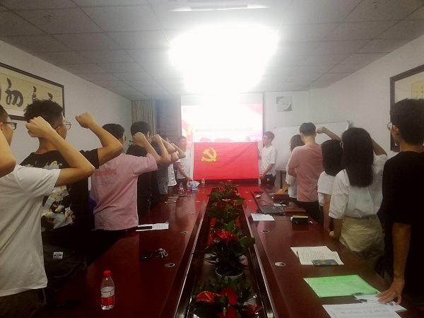 活动第二个环节的主题为“我有心声向党说”。面对鲜红的党旗,Beat365官方网站研究生党支部全体党员郑重举起右手,握紧拳头,在党支部副书记卢浩同志的带领下进行庄严宣誓。“我志愿加入中国共产党,拥护党的纲领,遵守党的章程……”重温入党誓词,在深切缅怀革命先辈们丰功伟绩的同时,也让全体同志接受了一次深刻的心灵洗礼,产生了强烈的内心共鸣。宣誓完毕后,支部的同志们依次发言,将自己的爱党之心和祝福一并送给我党。