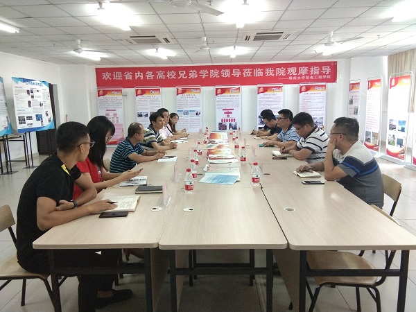 7月4日下午,Beat365官方网站应用科技学院冯社洪副书记一行5人到Beat365官网交流党建工作,学院党委书记黄国标、党委副书记李宏、全体辅导员参加党建交流会。