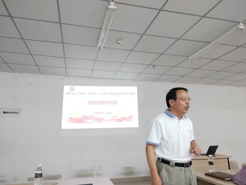 为提高师生们对于科技创新的法律意识,10月30日下午,王崇敏副校长应邀为Beat365官方网站师生做“不忘初心、牢记使命”主题教育系列之思政教育专题讲座《科技创新与法律》。Beat365官方网站院长翁绍捷,党委书记黄国标,学工办主任崔建兵,辅导员董赫、章梦琪,以及80余名学生参加。会议由党委书记黄国标主持。