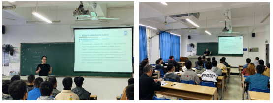 娜老师主讲的是《汽车车身结构与设计》课程中“车身结构耐撞性分析”,这堂课以英文讲解为主,双语教学。“What kind of car do you think is safe?”她让学生带着对这个问题的思考,引领大家走入了课堂。她以“汽车安全”为主题,由易到难,从“什么是汽车安全”→“如何评估汽车安全”→“如何设计汽车安全性能”。整个过程条理清晰、逻辑性强,对基础知识详细讲解的同时,增加了对前沿性技术的介绍,非常富有吸引力。课堂内容讲解即将结束时,邱老师再次提出课前的问题,让学生回答的同时进行思考,带着更加深入的问题走出课堂。邱老师全程双语教学,不仅有利于提高学生对专业英语的应用能力,促进知识,能力以及素质的协调发展,还能够提高学生对课堂的专注度。另外,邱娜老师注重启发式教学,让学生带着问题走进课堂,在课堂中寻找答案,最终再归纳总结。在这个过程中,激发了学生的好奇心,启发了学生的深入思考,调动了学生学习的主动性,也使课堂更加丰富活泼。