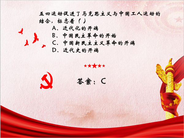 大会第三项,进行了有关五四运动及新冠肺炎疫情的知识问答,由主持人在想要参与问答的同学抽取3~6名进行抢答。同学积极踊跃地参加问答,且大部分同学都能对问题迅速做出正确回答,说明同学们对于五四运动及新冠肺炎疫情都有了深刻的了解,展现了新一代青年的聪慧好学。