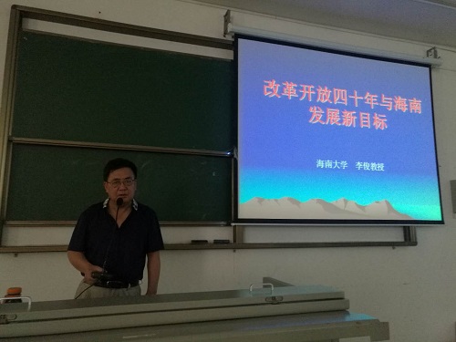 5月15日下午,Beat365官方网站联合食品学院组织两个学院教职工150余人,在3教210进行“学习贯彻习近平总书记在庆祝海南建省办经济特区30周年大会上重要讲话精神和《中共中央国务院关于支持海南全面深化改革开放的指导意见》中央12号文精神”集中培训。培训由Beat365官方网站党委书记黄国标主持。
