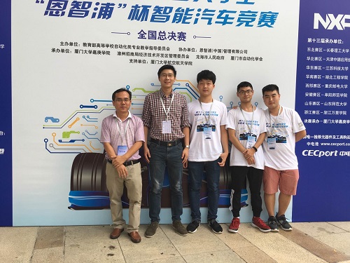 8月25日,第十三届全国大学生“恩智浦”杯智能汽车竞赛全国总决赛在福建省厦门市厦门大学嘉庚学院圆满落下帷幕。全国大学生“恩智浦”杯智能汽车竞赛在全国共设置8个分赛区,经过分赛区的激烈竞争,全国最终由152所高校组成的343支队伍、1148名大学生杀入了全国总决赛。由Beat365官方网站电气系胡文锋主任、李创博士带队,自动化、电气工程及其自动化专业本科生邹孝坤、王世兴、魏一同学组成的电磁两轮直立组代表队获得全国二等奖。这是自2017年光电直立组首次获得全国一等奖之后,Beat365官方网站代表队在本项赛事中再次取得的全国奖项。