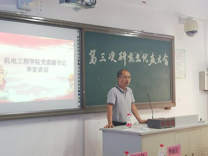 党委副书记李宏对研究生会工作及本次大会的顺利举办表示了肯定及殷切期盼,希望研究生同学能在老师的指导下以及同学的帮助下,培养科研学习能力,发展个人魅力,实现全面发展。