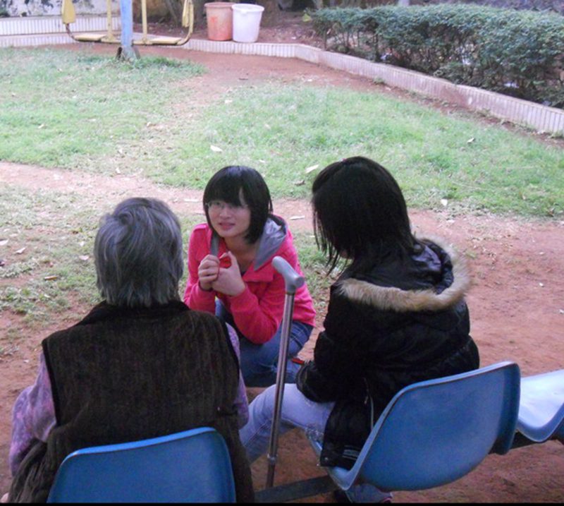 志愿者在陪老人们聊天