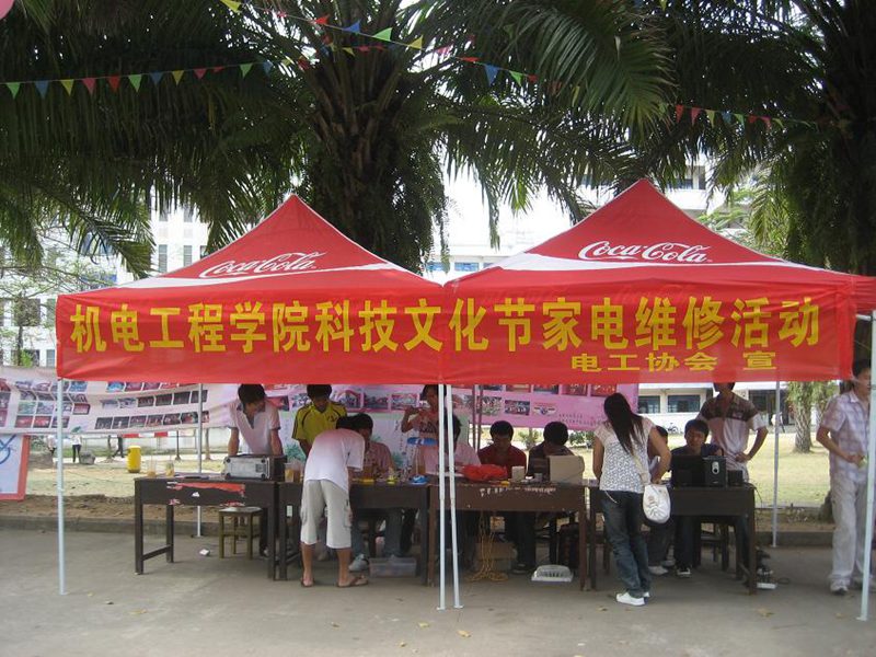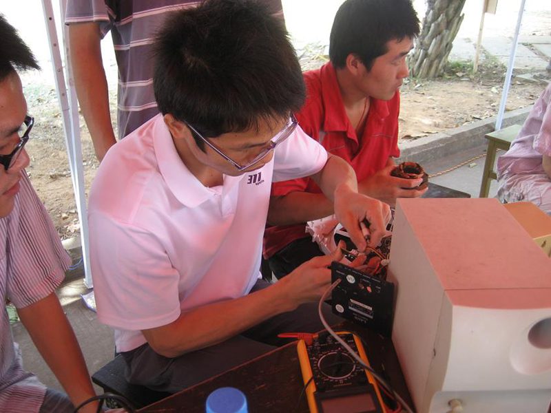 在帐篷的搭建,桌椅的搬运结束后,维修从上午10:00到下午6:00,维修工作主要由经过专业培养的协会技术部成员担任。维修的主要产品为台灯、mp3、mp4、音响、收录机、耳机、插排、电风扇、电热水壶、彩灯等。