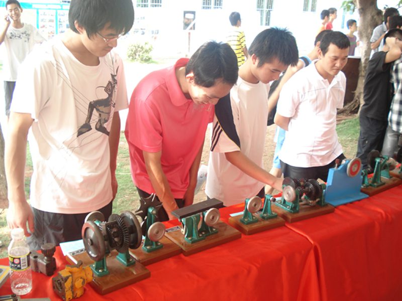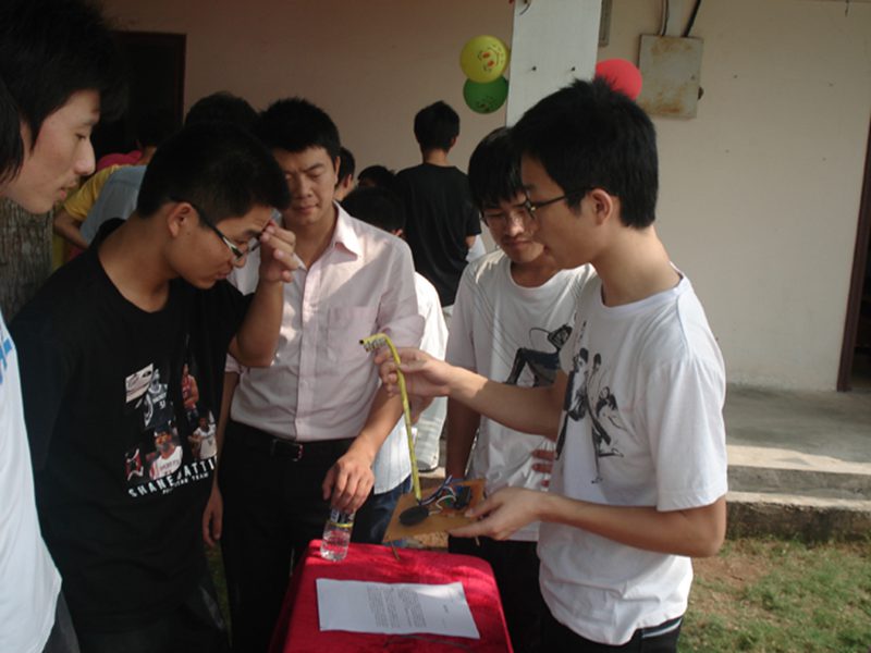 本次活动分为三个区,师生交流区,作品展示区,学生交流区。交流会一开始,同学们就纷纷将老师们团团围住,就生活、学习以及所学专业在未来的就业方向等方面向老师咨询,老师们耐心、真心、热心地为同学们一一解答;作品展示区的作品吸引了很多同学,他们饶有兴趣的看着师兄师姐们亲手制作的各种作品,视频材料,海报,和师兄师姐进行交流。其中感应赛车吸引了众多同学的目光,他们很好奇地向制作者和指导老师请教制作赛车相关的各种专业知识。天气虽炎热难当,但同学们和老师、师兄姐们的交流兴趣不减,现场气氛热烈活跃。