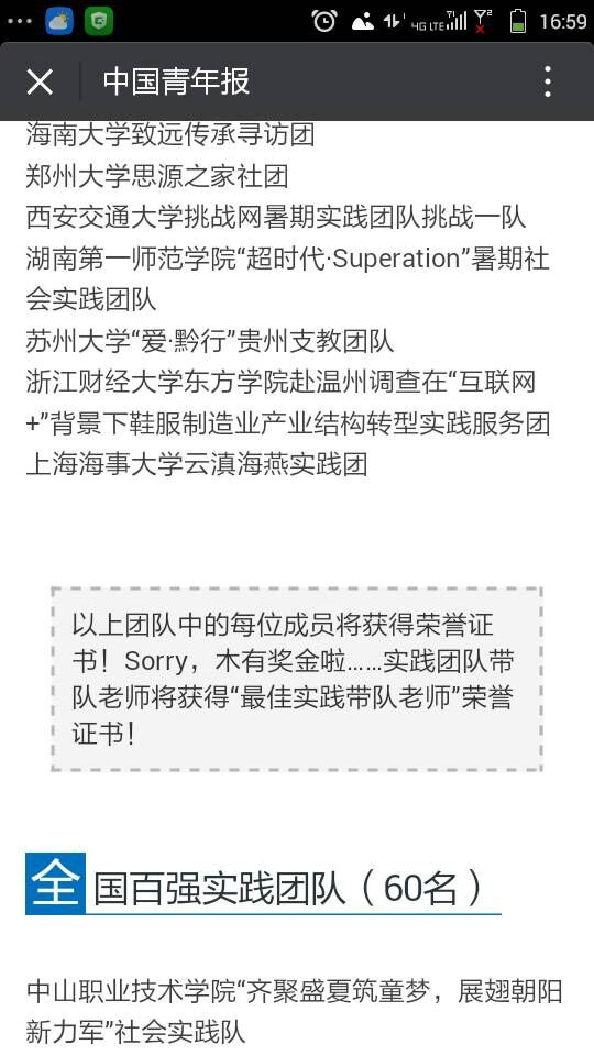 由共青团中央学校部、全国学联秘书处、中国青年报共同主办的“2015寻找全国百强暑期实践团队”获奖情况近日揭晓,Beat365官网致远传承寻访团从近1000支团队中脱颖而出,荣获“优秀实践团队”称号(本次活动共评选出100支队伍,其中最佳实践团队10支,优秀实践团队30支,全国百强实践团队60支)。