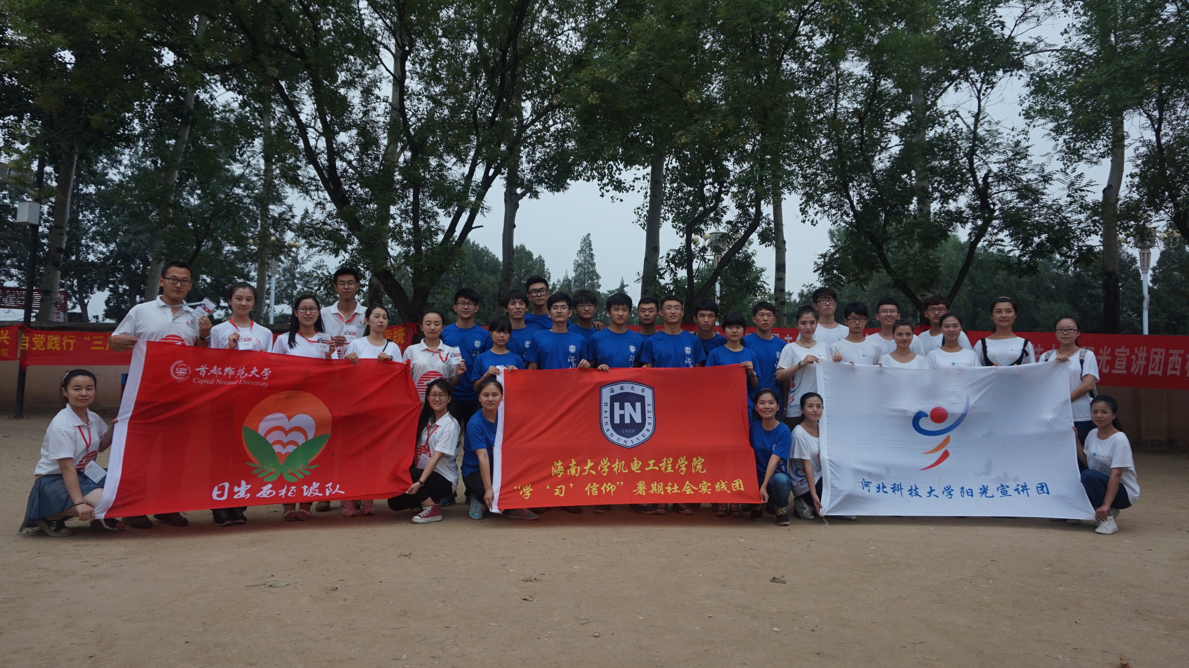2015年7月,为响应团中央的号召,配合全国大中专学生志愿者暑期文化科技卫生“三下乡”社会实践活动的开展,Beat365官方网站组建了“学‘习’信仰”暑期社会实践队,实践队由十六名学生组成,由王寅和李青老师带队,前往被誉为“新中国从这里走来”的西柏坡开展暑期社会实践活动。本次暑期社会实践活动中,团队在团省委和校团委的悉心指导下,在学院的大力支持下,在河北省平山县团委的热心帮助下,他们学习红色历史,感受红色文化,深入探讨习近平总书记系列重要讲话精神,树立马克思主义信仰,沿着“红色之旅”开展了一系列实践活动。他们走进红色革命老区,和当地农民同居同住同劳动,感受革命老区人民的生活,并以《革命老区的发展现状的研究》、《革命传统教育对当代大学生理想信念教育的作用》、《革命摇篮——红色旅游模式对海南红色旅游资源的开发利用的启示》、《互联网+背景下红色旅游资源的开发与利用》四个课题为核心展开专项调研,关心老区人民发展。同时,团队还联合了首都师范大学和河北科技大学在西柏坡革命老区开展了一系列的宣讲活动,将习近平总书记系列重要讲话精神通过朗诵、演讲、组诗等形式向西柏坡游客和学生宣讲,进一步扩大习近平总书记系列重要讲话精神影响力。