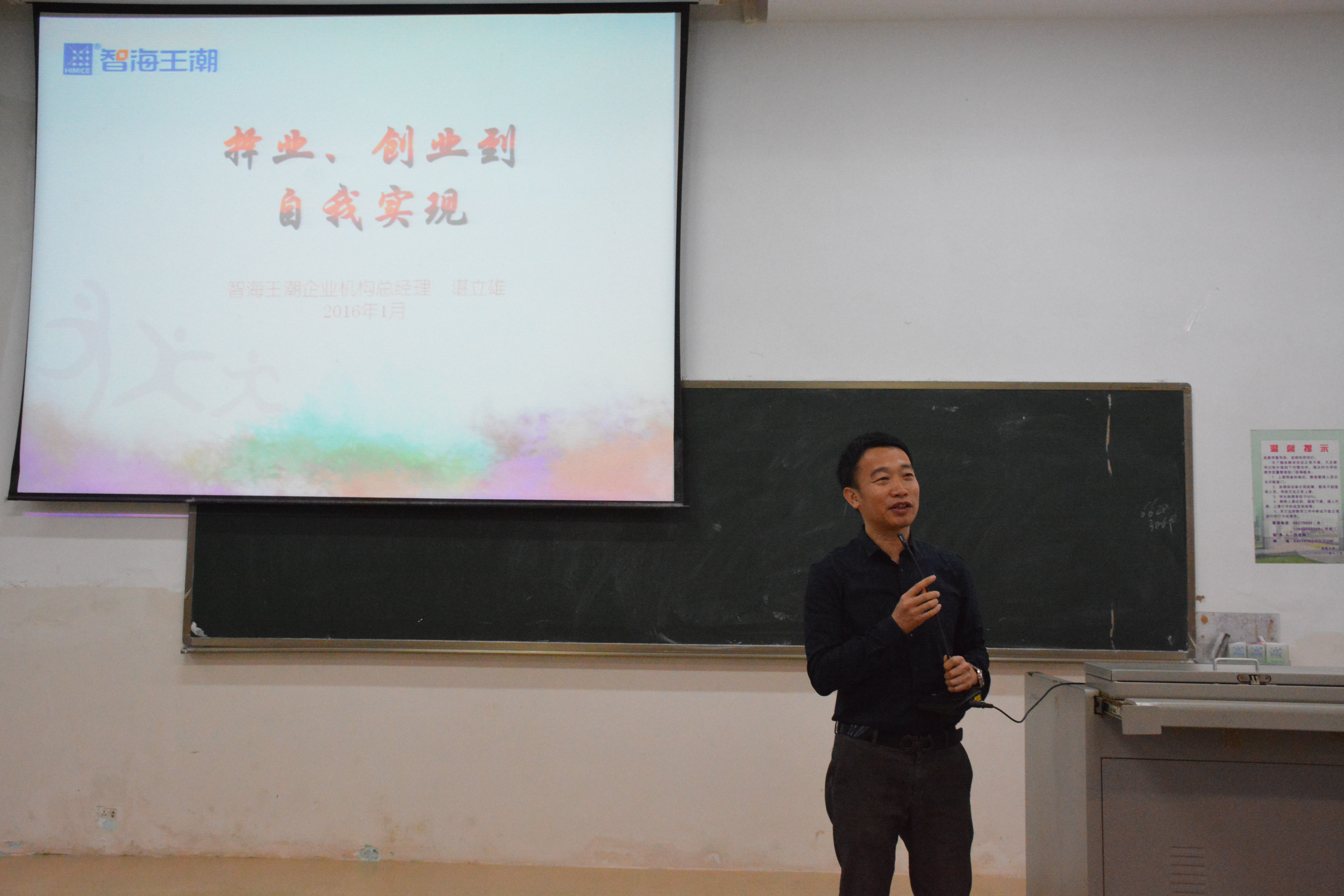 谌总经理以“择业,创业到自我实现”为主题,为2013级交通运输专业分享了自己创业的经历和感悟,围绕如何择业、如何创业和如何自我实现这三个方面提出了自己的独特的见解。第一,在择业方面,应当认清自己,合理定位选择自己喜欢的并且擅长的职业。第二,在创业方面,一是要有坚定的决心;二是选择好的行业,最好是市场化比较高的行业;三是要组织一个好的团队;四是要有规矩并严格执行。第三,在如何实现自我方面,谌立雄学长提到了哲学的三个问题,即我是谁?我从哪里来?到哪里去?他告诫同学们一个人能在有生之年能彻底想明白这三个问题就是实现了自我。谌总经理声情并茂、幽默风趣、激情的报告形式,迎来了同学们的阵阵掌声。