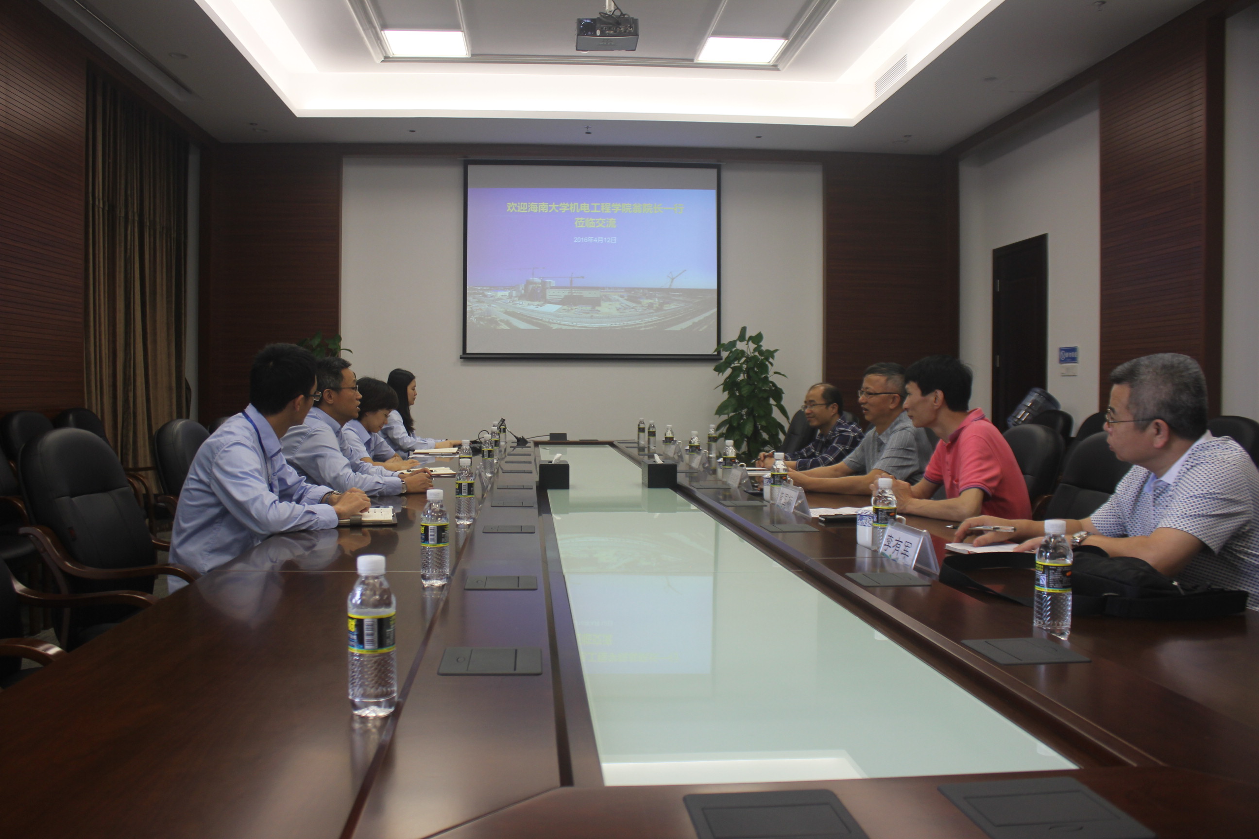 2016年4月12日,Beat365官方网站院长翁绍捷教授、党委书记黄国标、副书记李宏、电气工程系主任李有军、学工办崔建兵等一行5人赴海南核电有限公司,与海南核电有限公司人力资源处何鹏处长等领导进行了洽谈。在洽谈会上,何鹏处长对翁绍捷院长一行的到来表示热烈欢迎。余红科长介绍了海南核电有限公司的发展历程、发展方向和规划,对电气类、机械类、自动控制类等专业的人才需求。翁绍捷院长介绍了学院基本情况、学科建设等,分析了Beat365官网专业设置与公司人才需求非常契合,希望与海南核电有限公司加强合作,联合攻关技术难题、联合申报科研课题、共建仿真实验室,并邀请公司专业到校开设相关课程或讲座,为海核输送优秀毕业生。紧接着,双方就建立校企合作实习基地、定向培养等进行了深入交流。双方一致认为,Beat365官方网站与中核集团海南核电有限公司具有广泛的合作基础,开展战略合作,一定能实现优势互补、互利共赢。
