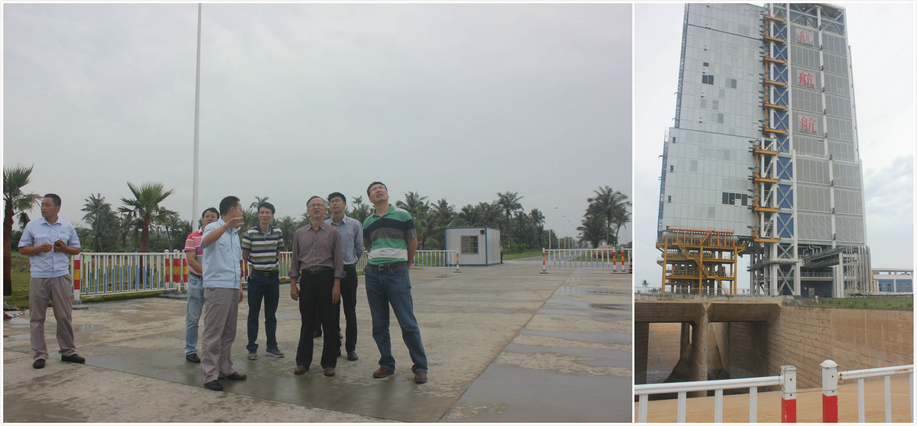 椰风海韵,风景旖旎。经过两个多小时的车程,翁绍捷院长一行到达文昌航天发射中心,在工作人员的陪同下参观了文昌航天发射场指挥控制中心、发射塔以及移动发射平台。发射站政委鲁建为我们详细介绍了整个文昌航天发射的具体情况,发射塔采用了国际最新的设计理念和最新技术,深凹到地下三层楼高的导流槽技术含量非常高,承受着火箭发射时高温、高速、高压的燃气流的冲刷,并将有毒气体分流,排到远离发射塔的空间,从而保护火箭周围的建筑设施。针对鲁建政委谈到发射塔及避雷塔材料易腐蚀情况,翁绍捷院长表示Beat365官网有博士专门从事机械材料腐蚀性研究,愿加强与文昌航天发射中心的交流合作,并邀请鲁建政委冬季小学期到Beat365官网授课。