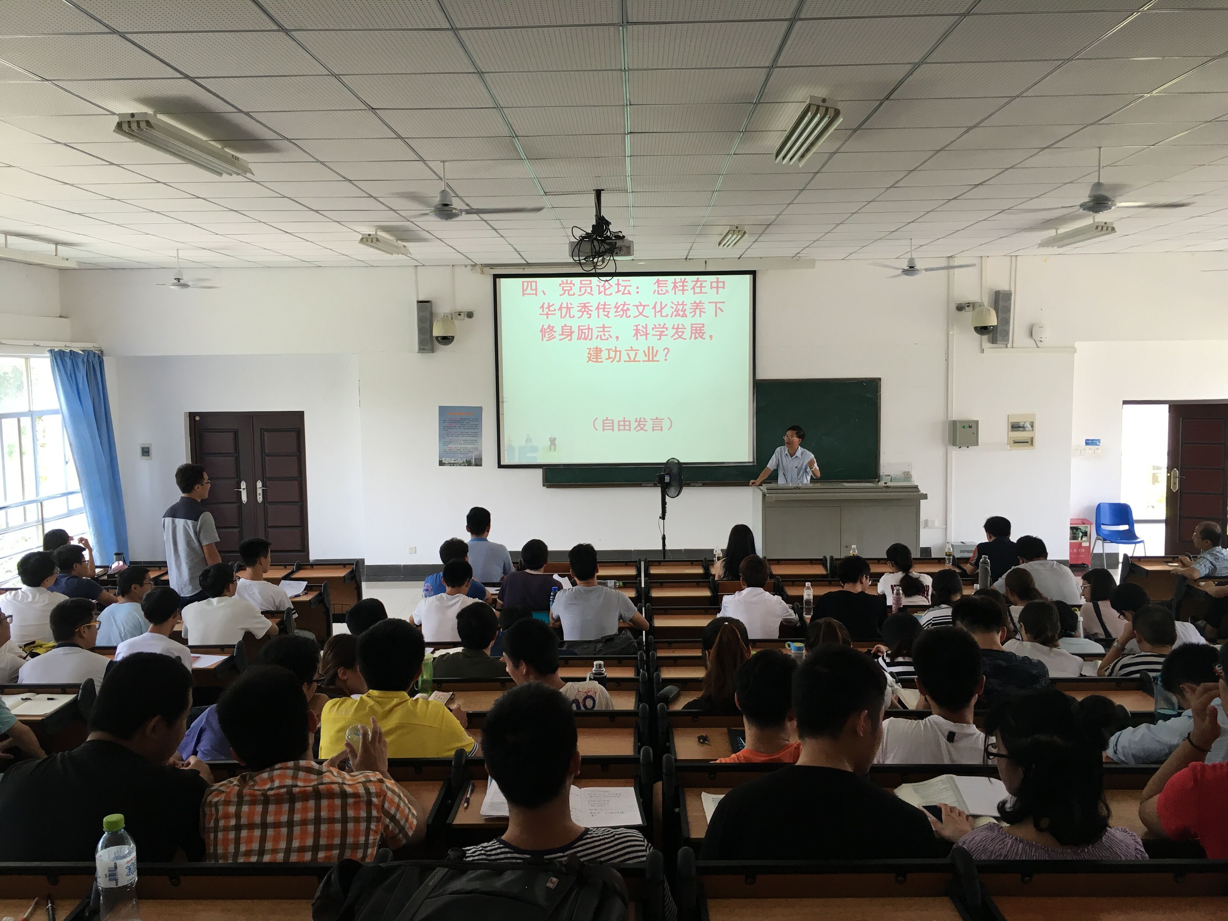 讲座最后,符江老师向现场的党员们提出了“党员如何在传统文化的滋养下建功立业?”的问题,同学们踊跃发言,纷纷谈及自己的看法与见解,体现出青年党员群体活跃的思维方式与强烈的社会责任意识。