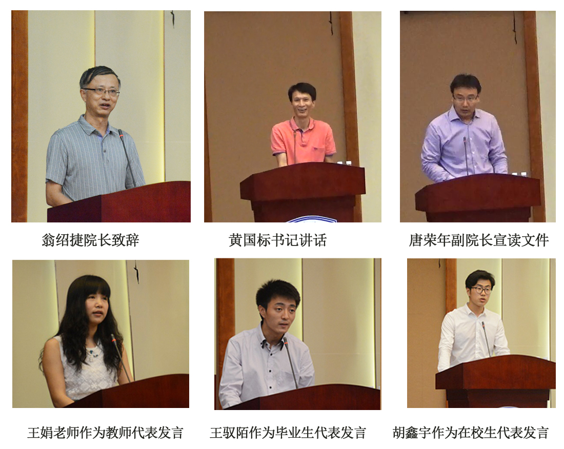 翁绍捷院长向毕业生致辞。他结合自己毕业时的感触,表达了对同学们的殷切期待,希望毕业生无论走到哪里都要有感恩心、责任心、自信心;要牢记母校“海纳百川,大道致远”的校训;要牢记身负的社会责任,和时代同行,与理想相伴,树立终身学习、自强不息的理念,努力实现由读书人向社会人的完美过渡!
