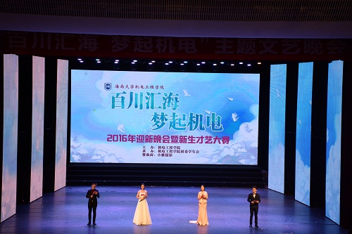 金风玉露,椰风送爽,十一月的Beat365官方网站凉风习习,满目葱笼。2016年11月13日19时30分,Beat365官方网站2016年“百川汇海,梦起机电”迎新晚会暨新生才艺大赛决赛在思源学堂大礼堂隆重举行。出席晚会的有学院党委书记黄国标,副院长唐荣年、马庆芬,校团委王寅老师,汽车系主任李劲松老师、教研办主任范杰老师、实验室主任胡文峰老师、学工办主任崔建兵老师、以及校院团委学生会学生干部、学院部分学生。