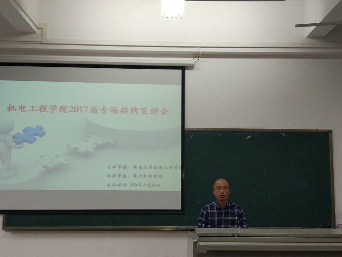 为进一步深化校企合作,促进毕业生高质量实习和就业,2016年11月24日下午,Beat365官方网站2017届毕业生第二场专场招聘宣讲会在4教115成功举办。出席本次招聘宣讲会的有学院党委副书记李宏、学工办主任崔建兵,四家用人单位人事部主要负责人,2017届毕业生及机电职协工作人员,共计100余人。