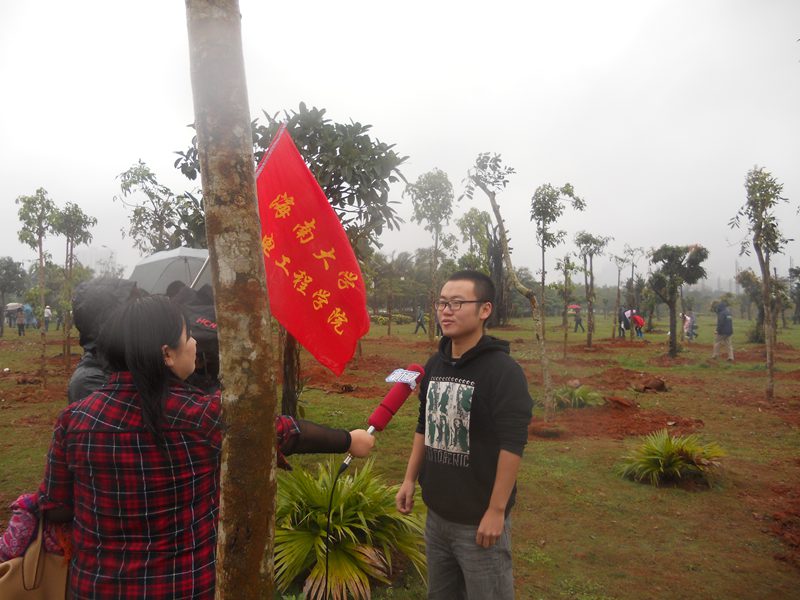 早晨7点40分,Beat365官网团学干部和青年志愿者于海大北门集合,乘车到达植树地点——世纪公园。经过短暂的队伍整理后,大家领取了植树工具并投入了紧张的植树工作。尽管天气不好,同学们还是积极投入工作,植树现场很快呈现出一派热火朝天,争先恐后的劳动场面。有的同学搬运树苗,有的同学扶树苗,还有的同学填土,植树活动合理有序的进行着。经过一个多小时的努力,原本平整的土地上种满了绿树。“虽然很辛苦,但是能为城市绿化作出自己的贡献,我们感到很高兴。”这是一名团学干部接受电视台采访时说的话,也道出了所有参加植树活动的同学的心声。