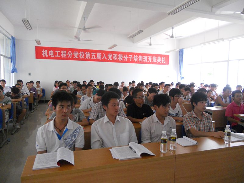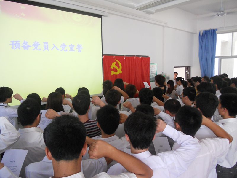 4月21日下午3点,Beat365官方网站分党校在四号教学楼106举行第五期入党积极分子培训班的开班典礼暨入党宣誓仪式。Beat365官方网站党委副书记黄国标、学院团委书记崔万春出席了仪式,参加仪式的新党员和入党积极分子共200多人。开班仪式由学院学工办主任陈秀妍主持。
