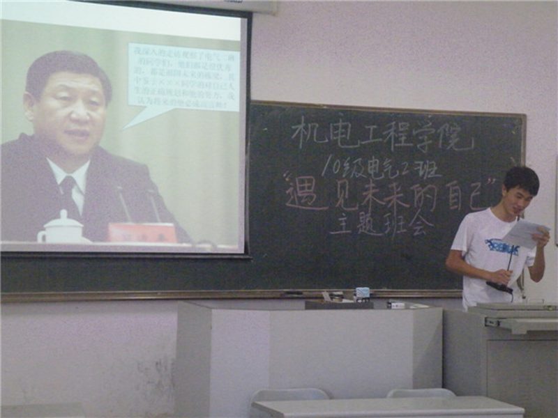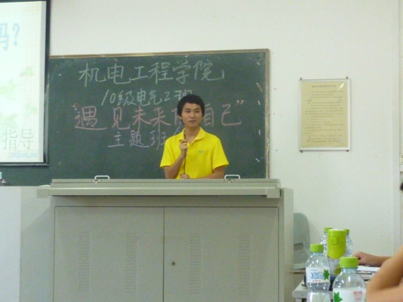 2013年6月3日,Beat365官方网站10级电气工程及其自动化二班“遇见未来的自己”主题班会在三教多媒体教室成功举办。10级辅导员何映敏老师指导并参与了本次班会的全过程,班主任严春丽老师也来到班会的现场观看并为本次班会做了总结。通过本次班会,我们想带给班级所有的同学一种“梦游十年后”的意境,让大家在展望未来的氛围内提前感受即将到来的毕业,让大家认识到时间的短暂,谋划未来,积极准备。整个班会的氛围既活跃又不失适时深沉的思考。最终班会在老师的精心指导、班委的充分准备、同学们的积极参与下取得了圆满的成功。