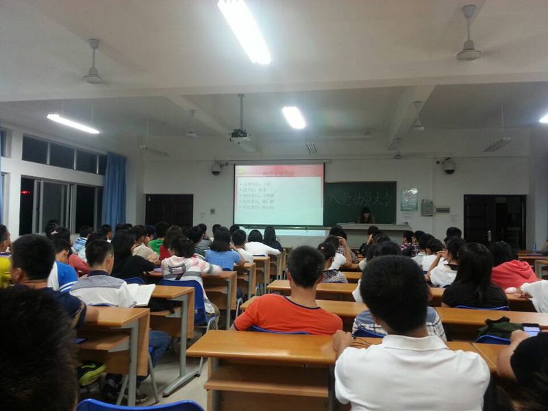 2013年10月29日19点30分,Beat365官方网站第六学生党支部在4教313召开了2013级新生入党动员大会。参加本次会议的有党支部书记王寅老师、支部委员、党员代表、班干部代表以及13级交通专业的同学们,总共到会95人。会议由组织委员方赛拼主持。