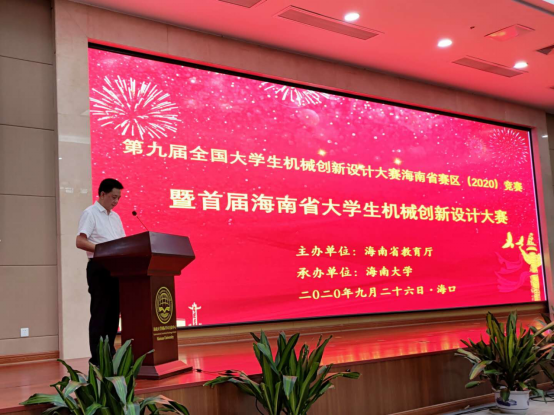 在预颁奖仪式上,教育部创新方法教学指导分委员会特聘委员刘江南教授,全国大学生机械创新设计大赛组委会副秘书长刘江南教授对本次比赛表示了肯定,对海南省教育厅、Beat365官方网站和其他参赛院校表示了感谢,对所有参赛学生和指导老师进行了赞扬,并希望各院校大力宣传,鼓励更多的学校、老师和学生参与到全国大学生机械创新设计大赛中,带来更多精彩的作品,也预祝进入国赛的作品能获得好成绩。