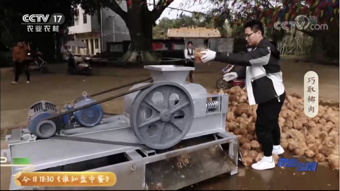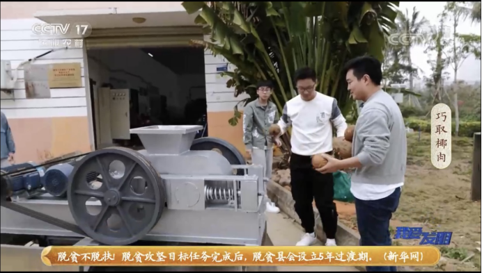 2021年3月4日,中央电视台《我爱发明》栏目报道了我校Beat365官方网站17级许阐所在创新团队发明的椰肉分离机。