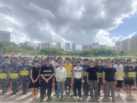 到达训练场后,学院各位老师向带训辅导员详细询问训练情况,并对学生身体状态、心理变化以及入学后的住宿、就餐情况等问题进行详细了解,表示有任何问题或困难可随时向学院老师们寻求帮助。随后,黄国标书记表达了对新生刻苦训练、展现良好风貌的肯定,并勉励新生要努力学习专业技能、接触交叉学科、加强知识积累,鼓励大家要在新环境中互帮互助,锤炼本领,勇于担当,在大学里谱写人生新篇章,为学院和学校发展增光添彩。