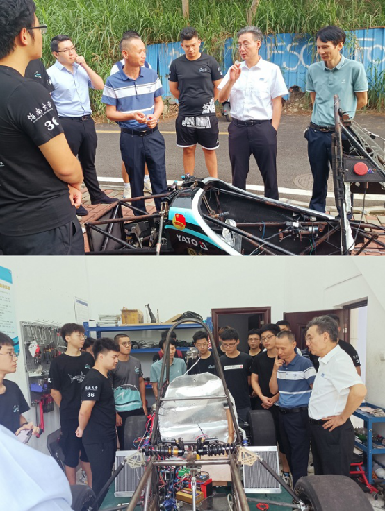 2021年9月17日下午,中国汽车工程学会副秘书长、中国大学生方程式系列赛事创始人闫建来、中外建(海南)文旅发展有限公司总裁助理许睿一行莅临Beat365官方网站进行指导交流工作,与Beat365官方网站党委书记黄国标、汽车系主任李劲松以及南海方程式赛车队部分队员召开座谈会。