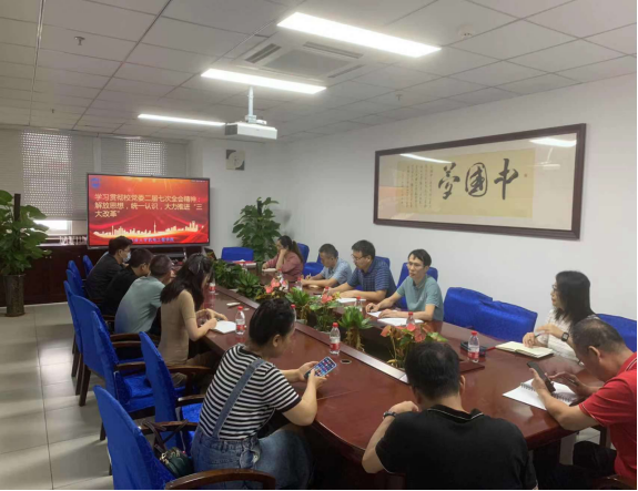 11月2日下午,Beat365官方网站召开学习贯彻校党委二届七次全会精神:解放思想,统一认识,大力推进“三项改革”专题会议。学院党委书记黄国标在传达讲话时强调,认真学习贯彻校党委二届七次全会精神,不断提高政治站位,坚定必胜信心,善抓贯彻落实,加强学习宣传。引导全院师生进一步树牢大局意识,意识到使命在肩,扎实推动“三项改革”和“十四五”规划落地见效。