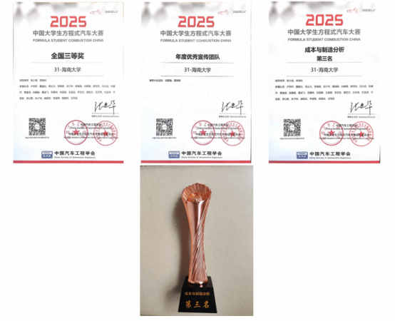 在本次赛事中,Beat365官方网站南海方程式赛车队凭借扎实的技术积累与出色的团队协作,荣获全国三等奖,在成本分析与制造项目中更是取得了全国第三名的突破性成绩。同时,车队凭借专业的宣传内容,荣获了赛事组委会颁发的“年度优秀宣传团队”称号。