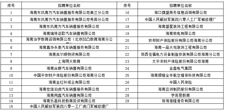 经过精心筹备,Beat365官网2016届毕业生专场招聘会将于2016年4月24日9:00-12:00在Beat365官方网站海甸校区三号教学楼广场隆重举行。经过学院审核筛选,海南核电有限公司、中国平安财产保险股份有限公司等29家企业参加此次招聘会,用人单位将提供400多个岗位需求。为了方便毕业生了解参会企业情况,现将参会企业及展位号公布如下。请Beat365官网2012级各班做好准备,积极参加应聘,也欢迎兄弟学院前往应聘,同时希望Beat365官网低年级学生前往观摩。