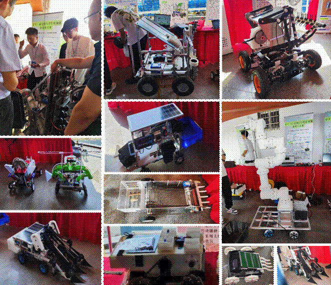 本次大赛分“兴农机械”、“仿生青蛙”和“仿生蝴蝶”3组进行评审,每组比赛均有现场评比和PPT答辩两个环节组成。国赛组委会巡视员全程巡视3组比赛情况。赛场上蝴蝶飞飞,青蛙跳跳,还有各式奇思妙想的兴农机具,场面空前热闹。