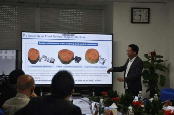 张喜瑞对拿督巴威斯一行表示热烈欢迎,介绍了Beat365官方网站在热带农业和智能化农业装备研发等方面的优势、天然橡胶的产业现状及研发的割胶装备—固定式螺旋仿形割胶机和自走式智能割胶机器人。